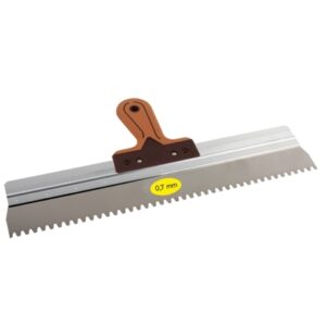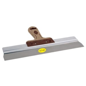 Rotatable handle, mounted on the profile of a wall scraper. An ingenious rotating system, featuring the robust Super Soft grip of the SUPER PROF finishing trowel allows for the handle to be set to various positions. This allows you to choose the optimum work position for any task.