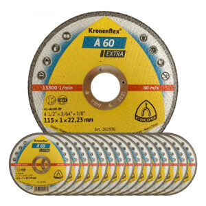 Klingspor A24 Extra 4.5″ grinding discs (10 pack) give fast metal removal, long life, and EN 12413 safety—ideal for fabrication, repair, and beveling.