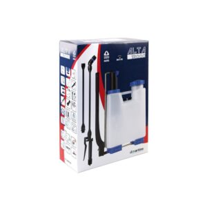 Mary 10 manual shoulder strap pressure sprayer. The standard lance has an adjustable nozzle. Supplied with an eco-friendly pressure regulator valve which reduces water and product consumption, saving money and respecting the environment. The safety valve