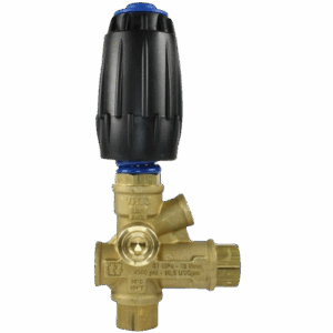 Mecline VRT3 Pressure Regulating Unloader Valve. Hexagonal check valve for a better smoothness. Safety lock at the maximum pressure. Regulation lock for Minimum and Maximum pressure in the knob version. Regulation spring of new concept. New body with inner housing of O-ring in the outlet for a higher resistance. Trapped pressure valve Brass & steel construction Blue cap/spring w/ regulator knob 3/