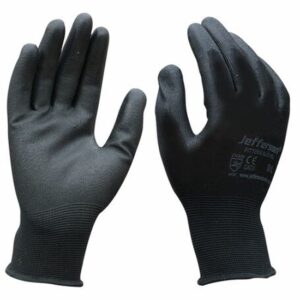 Black Fitters Gloves with polyurethane coating for excellent grip & precision. Approved to CAT II EN388 4131. Ideal for assembly & small-scale tasks.