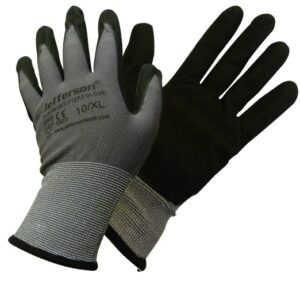 Black Platinum Fitters Gloves with ultra-thin nitrile foam for a secure grip and high abrasive resistance. Certified CAT II EN388 for durable protection.