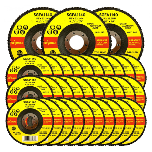 120-pack of Stargas 4.5″ Flap Discs (P40) for steel. High-performance grinding & blending discs ideal for fabrication & workshop use.