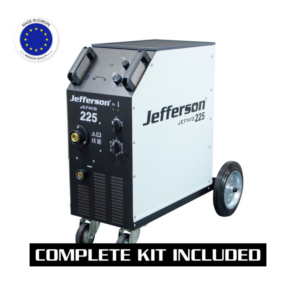 The Jefferson 225 Amp 230V MIG Welder Kit is a high-performance solution built for a wide range of welding tasks. Designed for reliability and durability, it features a 35% duty cycle at full output, making it ideal for uninterrupted welding over longer periods. With robust construction and smooth mobility, this kit is suitable for both professional workshops and industrial applications.