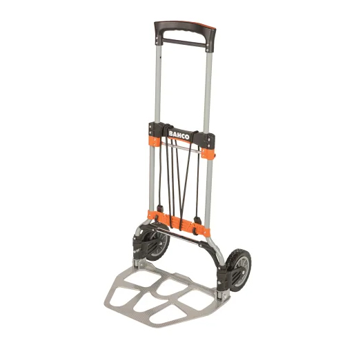 The Bahco 1430FT120 Folding Transport Trolley has a durable steel frame with folding aluminium tray. Fitted with a comfortable polypropylene handle. Supplied with elastic bands to help fix the load.