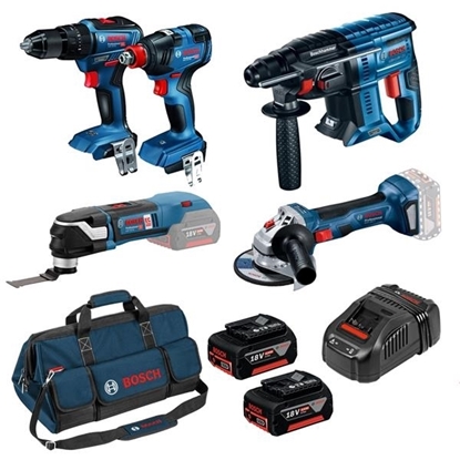 Bosch 5 Piece Brushless Kit Combi Drill, Impact Driver/Wrench, SDS, Grinder & Multi-tool (2x4Ah)