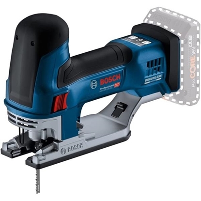 GST 18V-155 SC Professional (with barrel grip) comes with brushless motor and well-balanced tool design. Its ergonomic shape enables a 360° gripping circumference and the double-sided switch for right and left handers ensures perfect handling and tool control – even when sawing upside down. Its saw blade guidance prevents blade bending even in small curves and supports work with perfect precision. The tool is compatible with external dust extraction. Its large saw blade ejection lever and the drop control ensure increased user health and safety protection.