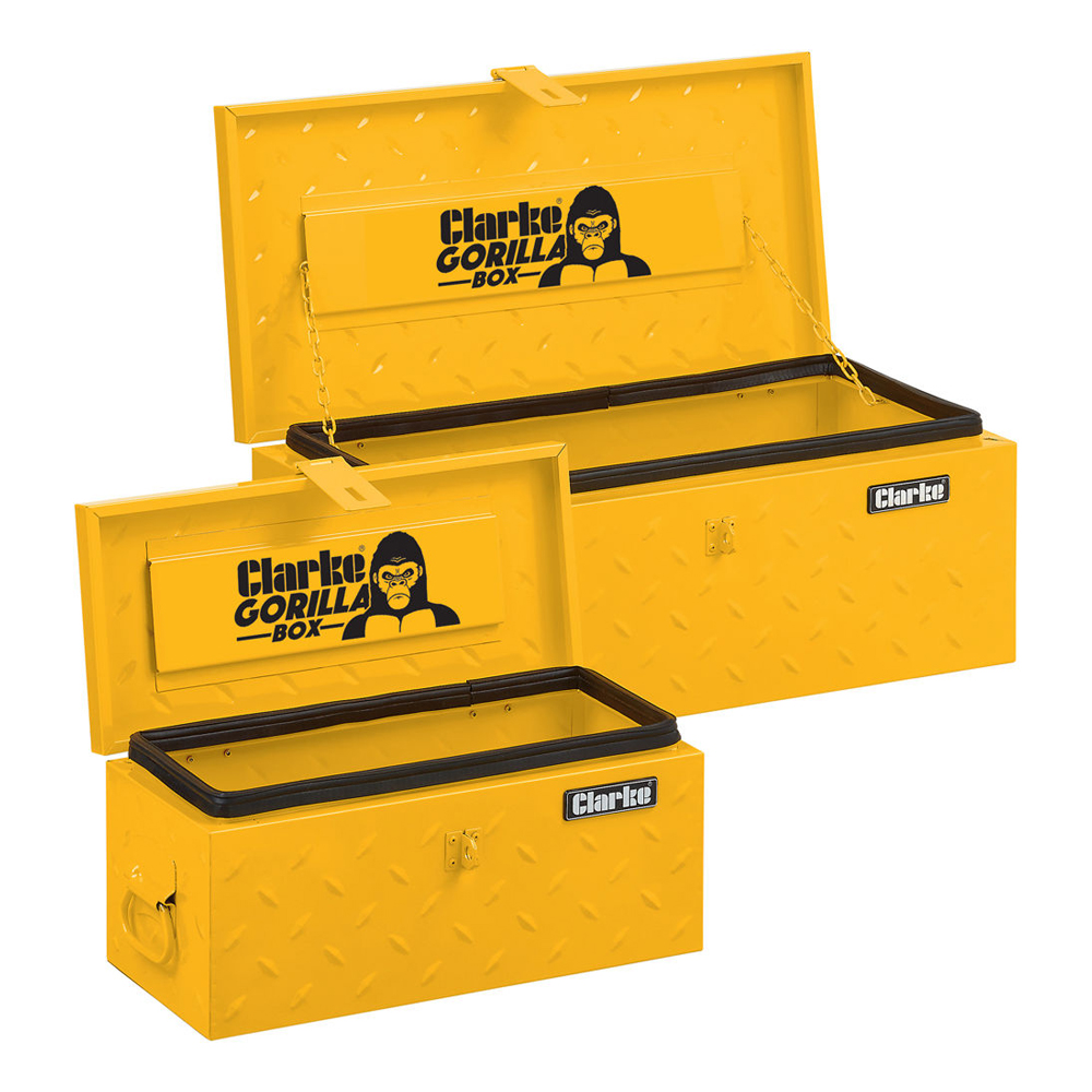 Add secure storage space to your van with the CC6748D 2 Piece Toolbox Set featuring the diamond plate steel with flush fitting lid, water resistant seal, steel side handles and locking hasp for padlock.