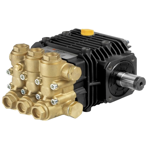 Features: Brass Head Built-in Unloader Valve Increased Fin Depth Increases Surface Area to Maximize Heat Dissipation Stainless Steel Unitized Check Valves Heat-Resistant Solid Ceramic Plungers Operating on Lubricated Packings Reinforced Crankcase for Increased Load Capacity Enlarged Crankcase Increases Oil Capacity for Better Lubrication and Lower Operating Temperatures One-Piece Industrial-Grade Oversized Bronze Connecting Rods 1” HOLLOW SHAFT with flange for coupling to petrol engines