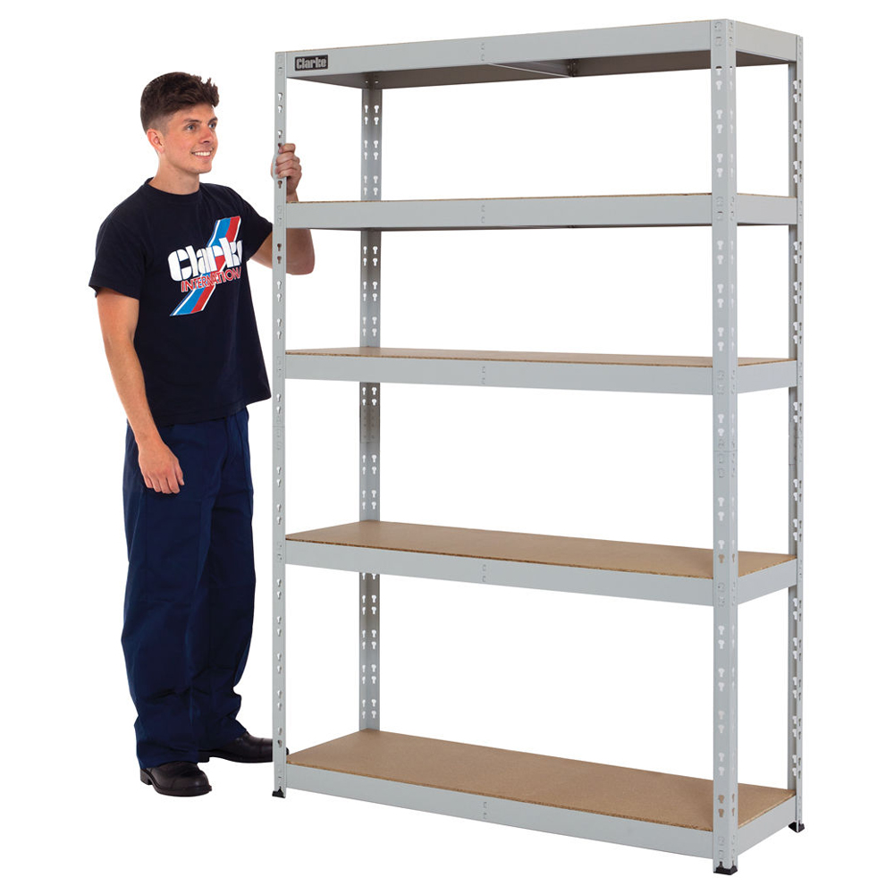The CSL5265/40LG shelving combines tough steel construction with quick and easy boltless assembly (only a hammer is required). High quality 8mm chipboard shelves hold up to 265kg (evenly distributed), and feature adjustable height.