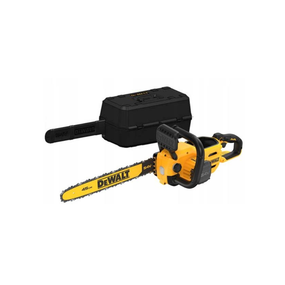 Power through tough cuts with the Dewalt DCMCS574N 54V XR Flexvolt Chainsaw. 45cm bar, brushless motor, and tool-free tensioning. Bare unit – battery not included.