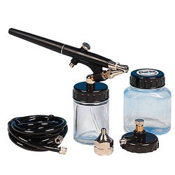 Finely detailed spray painting made easy with this popular single trigger action, external mix air brush and accessories. For model makers, artists and decorators the possibilities for creative work are limitless. Features