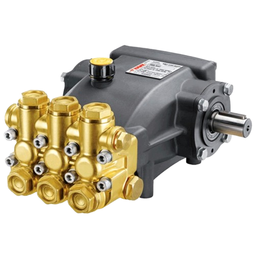 Hawk NMT series (24mm male shaft) 1450rpm pump producing 21lpm at a pressure of 200bar, designed for industrial use, this triplex piston pump features a brass head, ceramic pistons and an aluminium body. Designed for pumping liquids with low viscocity, designed for use with external unloader valve