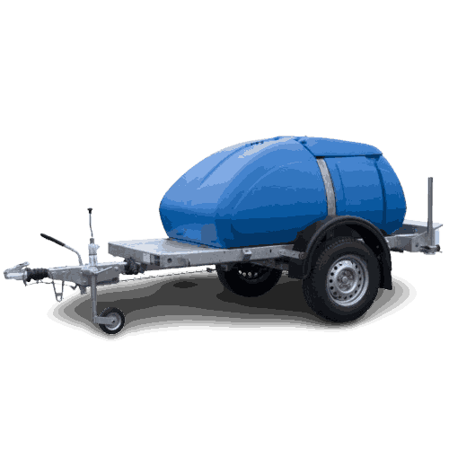 Poly water tank complete with baffle, 18” manhole and locking cover, mounted on highway tow single axle chassis with pump plate. 14” wheels and tyres. Robust 6-8mm thick polyethylene, baffled tank and galvanised chassis eliminates rusting and ensures long life. Easily drained and cleaned by use of fast drain and access manhole. Internal moulded baffle and aerodynamic shape make for safe and easy towing. Front chassis extension allows pressure washers and pumps to be fitted. Features: Highway Tow Chassis approved for towing on public highway. Hot dip galvanised chassis for protection against corrosion. Internal baffles prevent water surge during towing. Adjustable jockey wheel and option of ball or eye coupling. Highway lighting, 7 pin plug and mudguards (EU specifications). Lighting and number plate holder housed in protective channel. Fitted with rubber suspension, auto reverse braking and hand parking brake. Rear support leg for greater stability when filling or when unit uncoupled. Ball or eye coupling available – state which required when ordering.