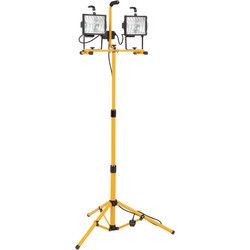 110V twin halogen work lights with tripod. Very bright 2x 8545 lumen floodlights with 400W halogen bulbs. Suitable for domestic or trade use.