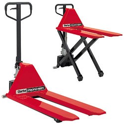 This 1500kg maximum capacity pallet truck is ideal for tough daily use in factories and warehouses where lifting to a greater height is demanded. Narrow version (230mm between forks) offers 4-way pallet entry. Features