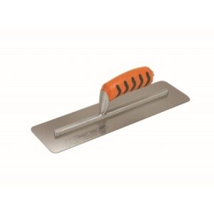 The Kraft Tool’s signature flat midget trowel with patented ProForm® soft grip handle provides a comfortable grip. The contoured shape and enhanced texture ribbing of the handle reduces fatigue and provides a great grip even when wet. The bright orange handle is easy to spot on a jobsite even after use.