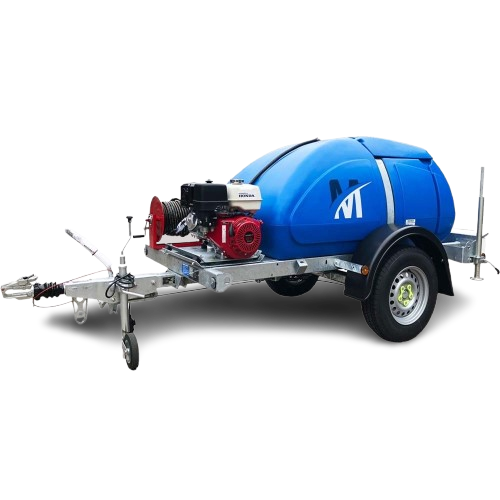 Bowser washers are ideal for remote and difficult to access locations, particularly those with no power or water availability. This Maxflow 250 gallon / 1100 litre bowser washer is mounted on a robust road tow trailer with Honda GX390 petrol engine and Comet RW 5530 S high pressure pump Features: 206 bar / 3000 psi 21 litres per min Gearbox driven 30 m high pressure hose on reel Heavy duty lance and suction pipes LxWxH (mm): 3400 x 1530 x 1350