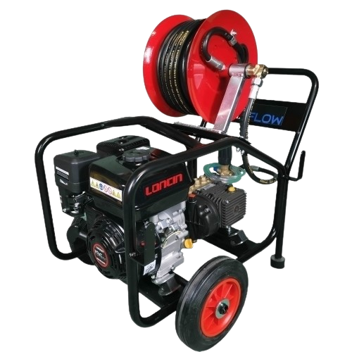Maxflow Industrial Pressure Washer – Loncin G420 21 LPM Gearbox Driven Trolley Frame – Reel (Electric Start)