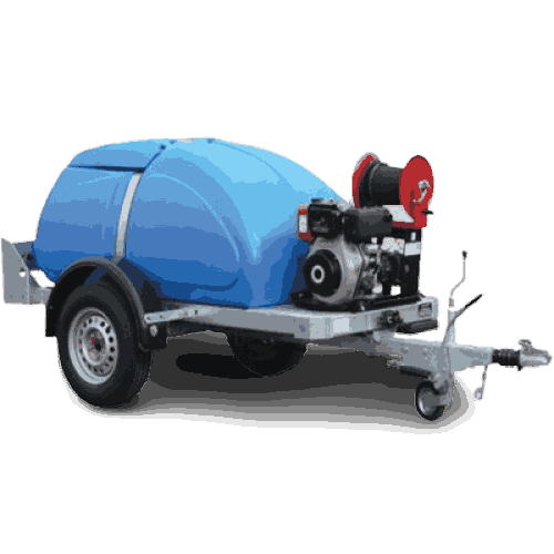 Bowser washers are ideal for remote and difficult to access locations, particularly those with no power or water availability. This Maxflow 250 gallon / 1100 litre bowser washer is mounted on a robust road tow trailer with Yanmar L100V diesel engine and Comet RW 4030 S high pressure pump Features: 206 bar / 3000 psi 15 litres per min Belt driven 30 m high pressure hose on reel Heavy duty lance and suction pipes LxWxH (mm): 3400 x 1530 x 1350