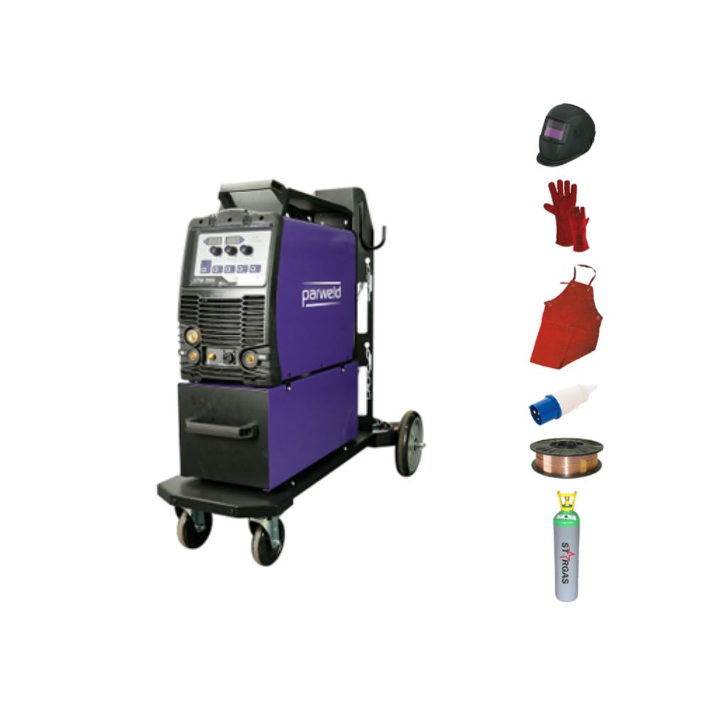 Shop Parweld XTM 256i MIG/TIG welding machine with accessory kit. Multi-process, 400V three-phase, real-time data display, synergic control, and more.