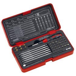 With a vast range of bit types and sizes, this set will prove an invaluable addition to your tool kit. The ratchet handle has a 3 position mechanism so you can change the direction of the ratchet while still applying pressure to the screw or bit. Also included is a 200mm flexible extension bar for reaching into almost impossible spaces. Features