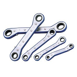 A useful set of five angled head, reversible ratchets manufactured from chrome vanadium steel with hardened sockets. A worthy addition to any professionals tool kit. Features