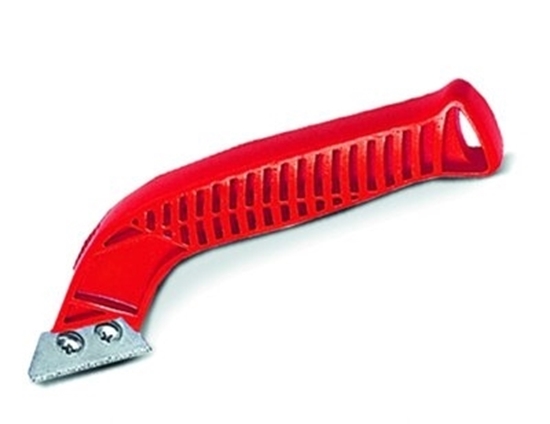 Traditional grout scraper with an ergonomic handle Two platelets of electro-deposited tungsten carbide Combinable with 1, 2 or 3 plates.