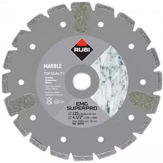 RUBI Marble Electroplated Diamond Blade EMG 115 SUPERPRO is Recommended for cutting marble, limestone and fibres