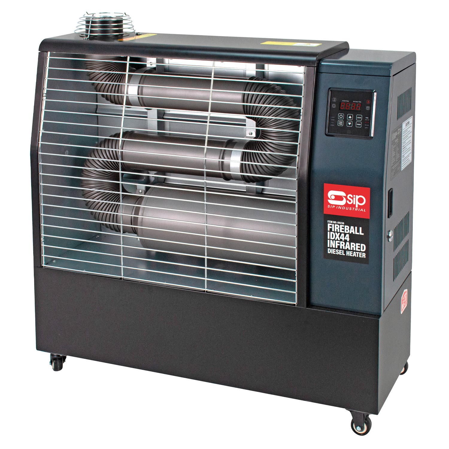 The SIP FIREBALL IDX44 Industrial Infrared Diesel Heater is an infrared heater designed to quickly and effectively heat well-ventilated warehouses, commercial spaces and large workshops.