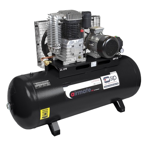 The SIP ISBD10/270 Industrial Electric Compressor is a powerhouse solution designed for professional-grade industrial applications. Built for reliability, durability, and superior performance, this belt-driven compressor operates at a high capacity, ensuring consistent airflow and efficient operation under demanding conditions. With a 270-litre air receiver and a powerful 10HP motor, the ISBD10/270 delivers outstanding air delivery and pressure, making it perfect for workshops, manufacturing plants, and heavy-duty environments. It features a heavy-duty two-stage pump that enhances its lifespan and performance. The robust cast iron construction ensures longevity while minimizing maintenance needs. Ideal for powering pneumatic tools, spray guns, and other industrial machinery, the SIP ISBD10/270 guarantees maximum output and minimal downtime. Whether you are running a busy workshop or require dependable compressed air on demand, this compressor is engineered to handle it all with ease and efficiency.