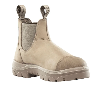 STEELBLUE Hobart Sand Scuff S3 premium safety boots boast a robust sand-colored leather upper that ensures superior abrasion resistance.