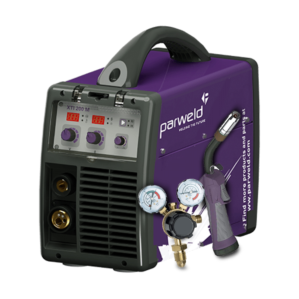 Buy XTM 201I MIG Inverter Welder with torch & regulator. Portable 230V DC output machine, dual display, generator friendly, 200A power.