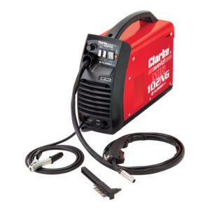 This dual purpose machine offers the advantages of standard MIG welding but without the need for gas bottles. Although it can easily be converted to use conventional shielding gases, it is supplied with a special flux-cored wire that produces it’s own gas shroud as it burns. This feature simplifys its use and makes it more suitable for outside use since there is less chance of any breeze blowing a