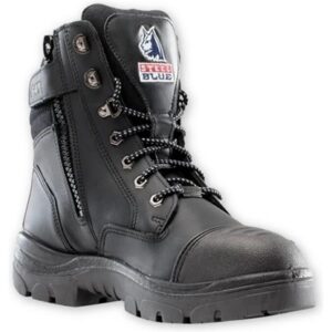 STEELBLUE Southern Cross Zip Black S3 safety boots boast a sleek black leather upper that not only looks professional but also meets rigorous S3 safety standards.