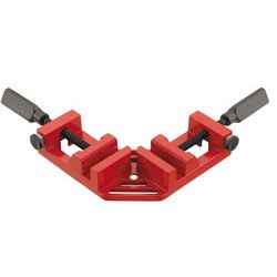 A versatile mitre and drill press corner clamp. Clamps corner joints at 90°. Built from tough die-cast aluminium with quick action twin jaws. Features