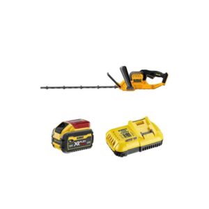 The DCMHT573X1 54V Flex Volt 65cm Hedge Trimmer (1x9Ah) delivers robust cutting performance and extended runtime, perfect for tackling large hedges with precision and ease.