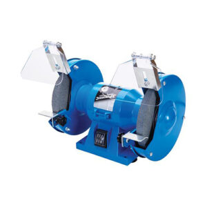 Bench-mounted grinder fitted with 150mm coarse (36 grit) and fine grade (60 grit) grinding wheels. Strong cast-aluminium body houses a long-life 150W induction motor with sealed bearings. Bolt holes and rubber mounting feet for bench mounting. Dust-protected switch. Ideal for light to medium duty grinding tasks on metal workpieces, such as sharpening drill bits and cutting/shaping tools,